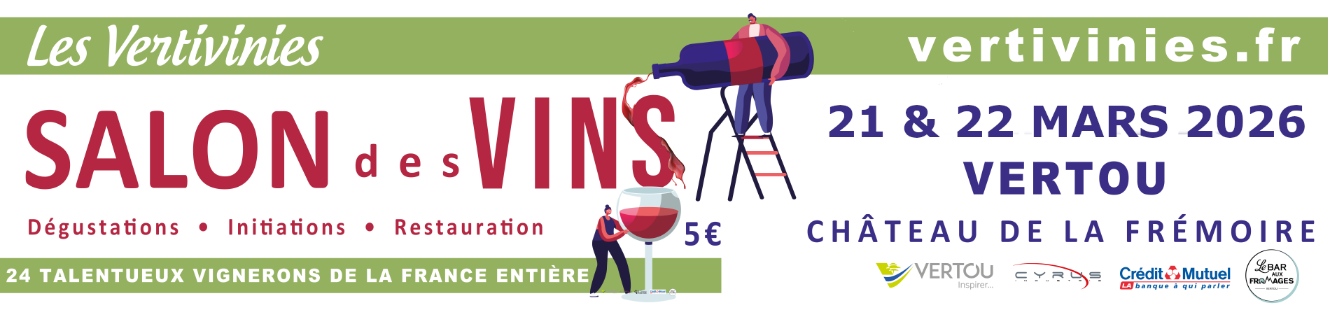 Cette année encore, venez nous rejoindre à la 13e édition du salon des vins “les Vertivinies” au Château de la Frémoire à Vertou les 21 et 22 mars 2026.